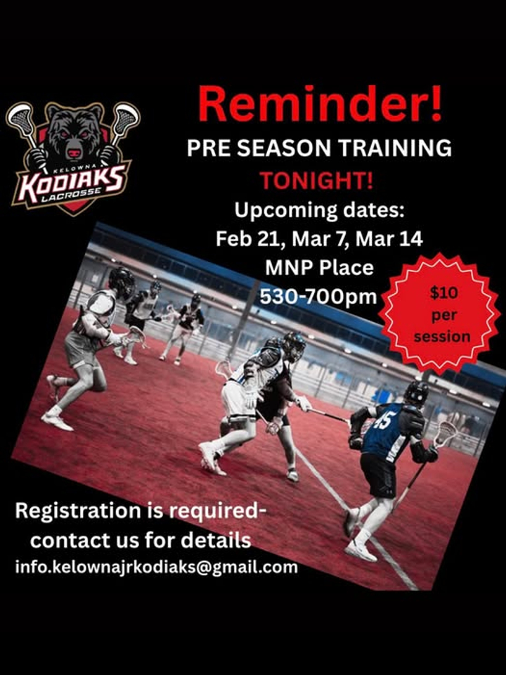 Players born in 2009 are our new recruits this year! Pre-season and evaluations are underway and we want invite you out! Contact us through our socials or at info.kelownajrkodiaks@gmail.com for more info
